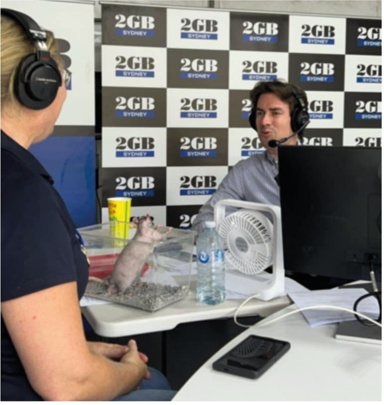 After the 2GB interview It was power walk back to the NSWFRS display area for presentation as well as to chat to the public and prepare for the Rodent segment with Farmer Dave. This is where we are introduced by Farmer Dave to an audience with our pocket pets in a fun and informative show, however, I could not stay too long as I was scheduled for my final radio interview with ABC.